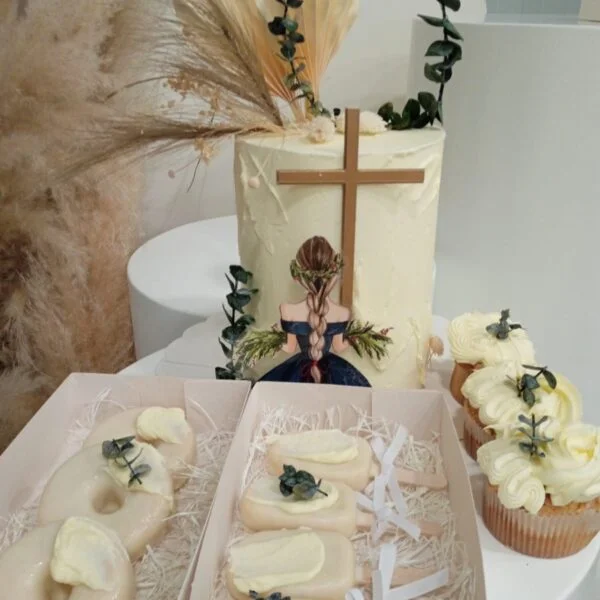 El pastel de comunión es el gran protagonista de la mesa dulce y debe destacar por
